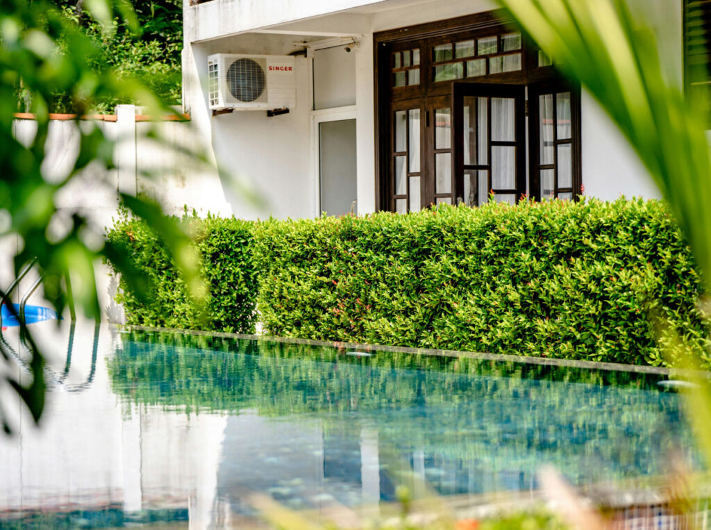 Einsatz hochwertiger, naturgetreuer Kunstpflanzen in ausgewählten Bereichen, um Pflegeaufwand zu reduzieren und dennoch ein harmonisches Gesamtbild zu gewährleisten.